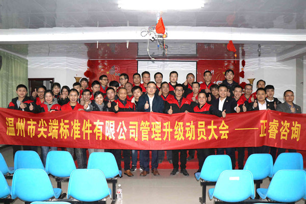 2017年12月19日,溫州市尖端標準件有限公司管理升級啟動大會正式召開。尖端公司總經理涂其華與廣東正睿企業管理研究院副院長龐金森共同出席了啟動大會